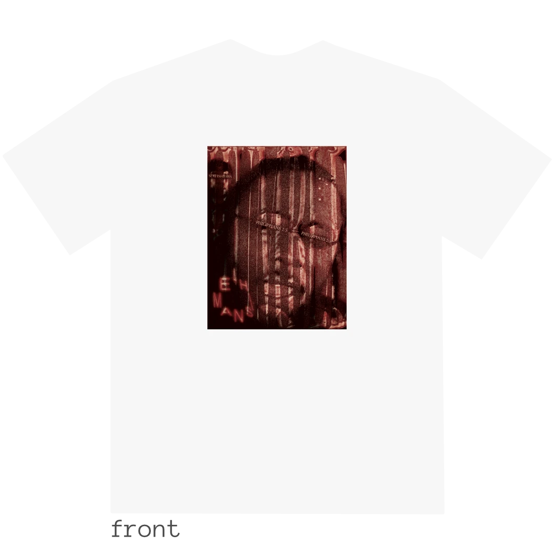 What looks like blood dripping down his face is actually the word "HUMBLE" stretched and distorted until you can barely make it out. It's got that DAMN aesthetic but it's also referencing the blood of Christ